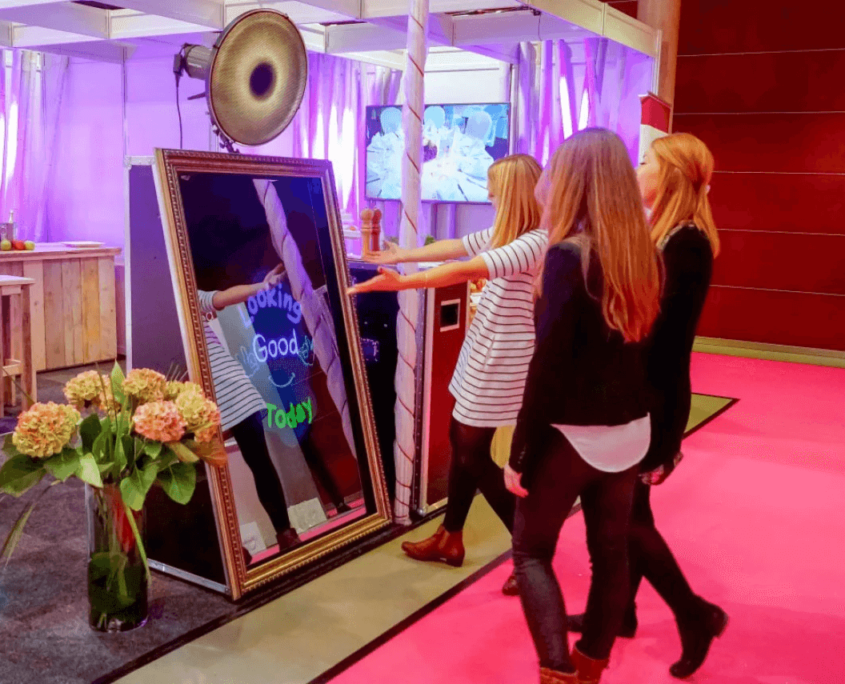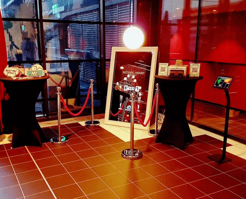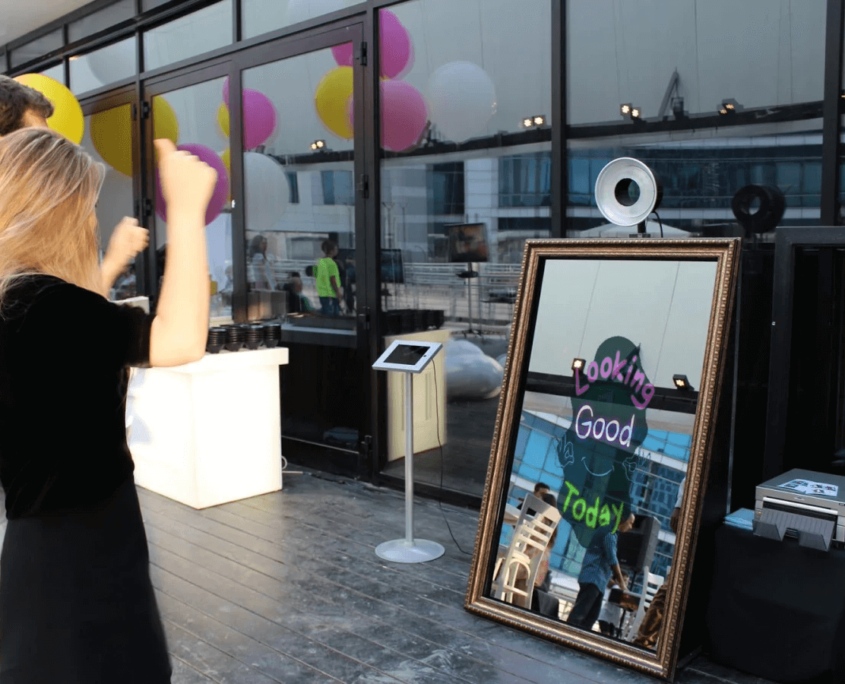 Tampa’s Mirror Me Photo Booth and Station is a unique Selfie Mirror photo-generating product offering the latest technology in interactive picture taking. The full-length mirror offers a sleek design and a user-friendly interface, communicating with guests through a touch screen of colorful animations and entertaining voice guidance.